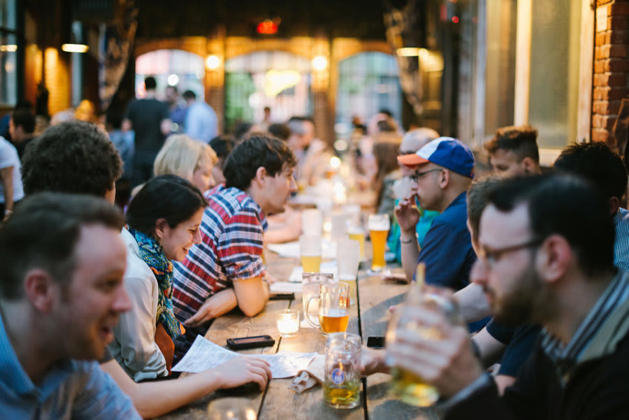 Smorgasburg, a spring-and-summer food festival, is made up of local snack vendors that set up shop weekly in East River State Park. Festival-goers can sample the wide variety of food stalls and then enjoy their spoils on benches overlooking the East River. Outside of hosting Smorgasburg, East River State Park and the accompanying piers are a great location to watch the sunset over the Manhattan skyline. In Williamsburg, the party often starts early in the day and continues late into the night. Many bars have outdoor spaces that become packed when the sun is out. Under-the-radar promoters host daytime pop-up parties at all different kinds of venues: parking lots, rooftops, lofts, or parks. Nightlife here is comprised of chic lounges and popular dive bars with backyard patios. Down-home bars like Turkey’s Nest Tavern satisfy many long-time neighbors. Williamsburg’s music scene draws an audience from all five boroughs. Large venues like Brooklyn Bowl or Music Hall of Williamsburg attract big name acts, while smaller venues like 285 Kent and Shea Stadium are at the forefront of the do-it-yourself music scene. Here, die-hard punk, rock, and experimental fans can enjoy live acts with more intimacy.